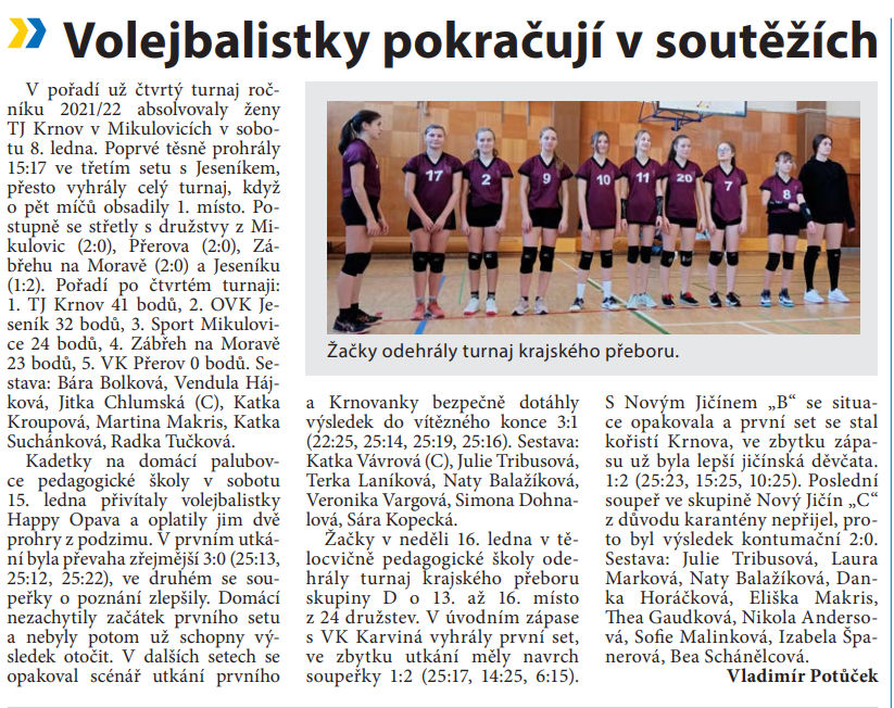 Krnovské listy - volejbalistky pokračují v soutěžích